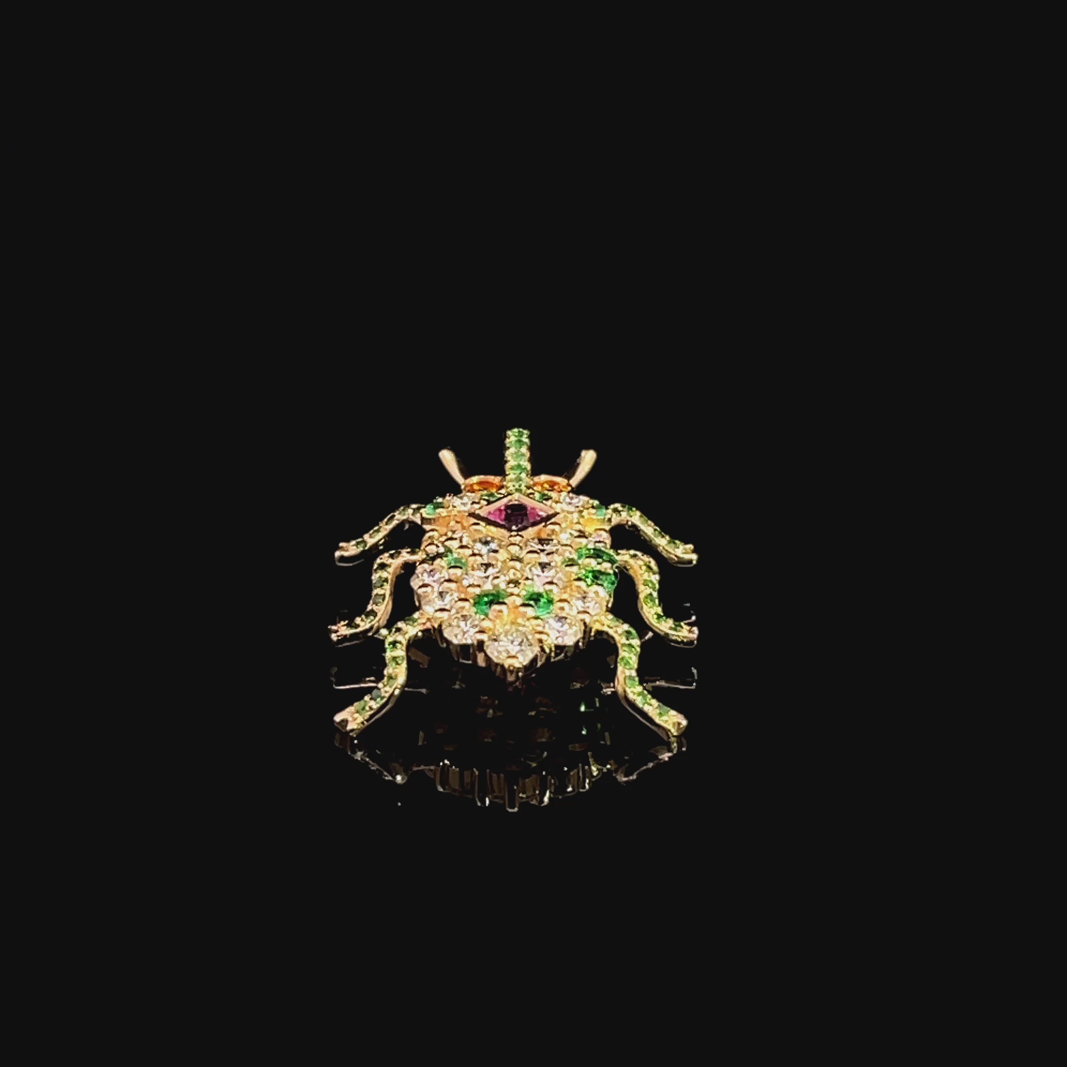 An investment outer space charm containing natural diamond brilliants FG VS-SI1 1/6. Tsavorite in its feet. Sassy! Yellow gold 18kt.