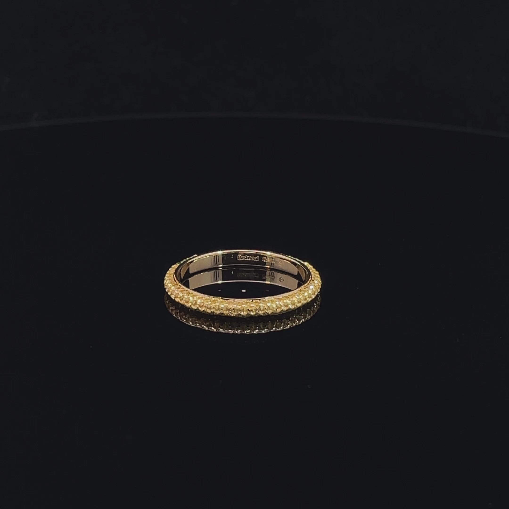 Natural yellow sapphires, tsavorite or diamonds, 1.1 mm. 3 row housestyle setting. Yellow gold 18 kt.